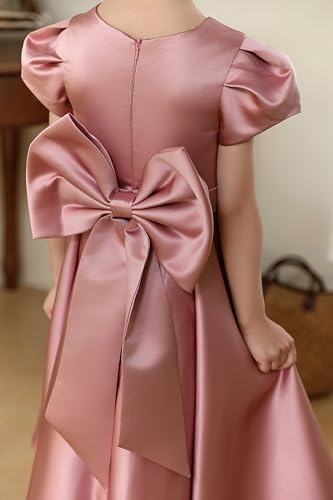 MCieloLuna Cute Toddler Flower Girl Dress Glossy Satin First Communion Dresses O Neck Short Sleeve Princess Long Gown 4