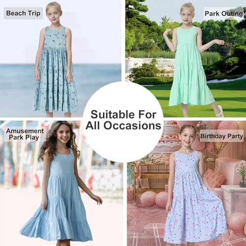 UNACOO Kids Girls 100% Cotton 1 or 2 Packs Sleeveless Long Maxi Tiered Dress (Age 3-12 Years) 3
