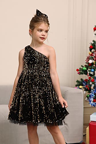 GRACE KARIN Girls Sequin Dress One Shoulder Wedding Party Gown with Hair Bow 5-12Y 2