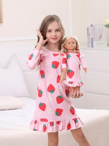 Bow Dream Girl Dress Cute and Matching American Girl Doll Clothes for Girls Pink Strawberry 6