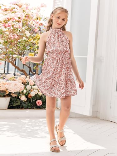 Floral Girls Dresses Age 5-14 Years Kids Summer Outfits Casual Halter Sleeveless Cute Short Sun Dresses 4