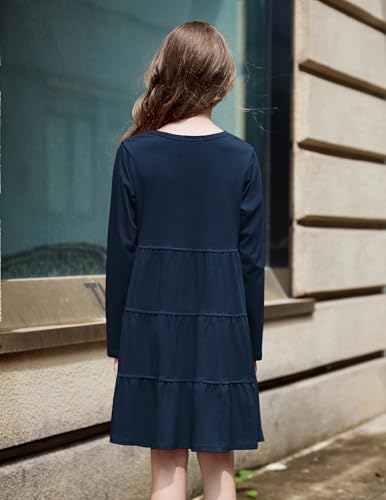 Arshiner Girl Long Sleeve Dress Tiered Ruffle Swing Tunic Shirt Dress 6
