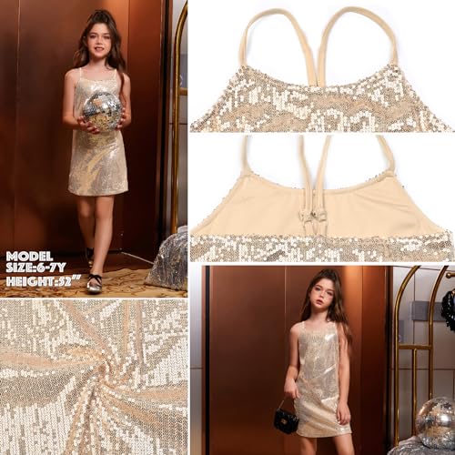 Perfashion Girls Sequin Dress Adjustable Spaghetti Strap Pencil Cami Midi Bodycon Dress Sparkly Party 6-15Y 2