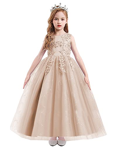 HIHCBF Flower Girls Lace Applique Wedding Sequins Tulle Dress Princess Pageant Communion Birthday Christmas Party Ball Gown 6