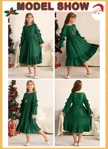 MITILLY Girls Boho Long Sleeve Dress Crewneck Ruffle Swing Casual Loose Flowy Tiered Midi Fall Winter Dress with Pockets 4