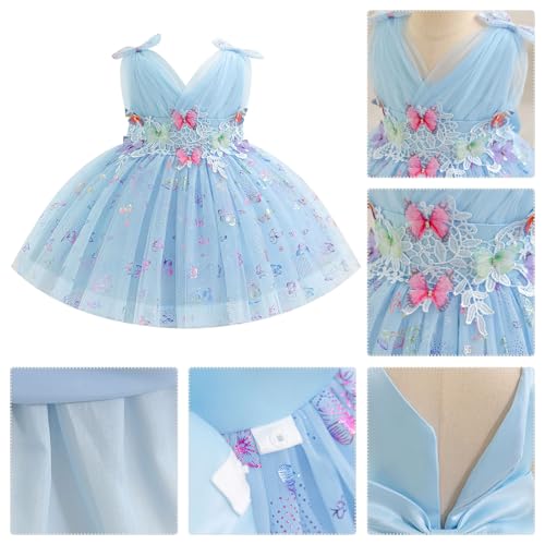 AWIBMK Kids Baby Girls Butterfly Tulle Tutu Dress Sleeveless Pleated V-Neck Bowknot Birthday Wedding Party Dresses 4