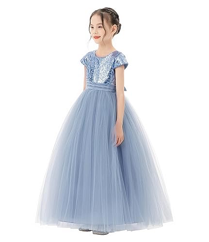 ekidsbridal Sequins V-Back Cap Sleeves Formal Flower Girl Dresses for Junior Pageants 323 5