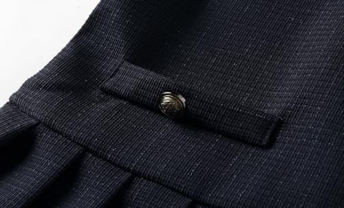 HOT ! Mud Kingdom Girls Tweed Dress Peter Pan Collar Sleeveless Midi Dress with Metal Buttons Navy Blue