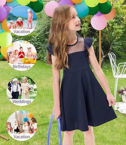 • Stylish Design: Girls' summer dresses feature a round neck for comfort and polka-dot mesh for breathability, ideal for active days. Girls' special occasion dresses combine round necklines with mesh detailing, blending elegance and playful charm