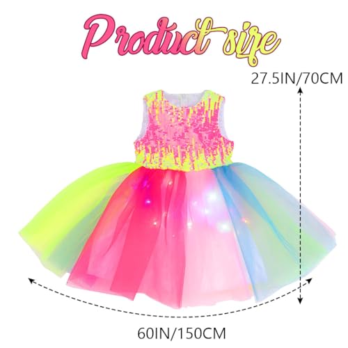 EVILD Girls Light Up Rainbow Tutu Dress Glow Sparkly Sleeveless Sequin Tulle Dresses Party Birthday Dress 4