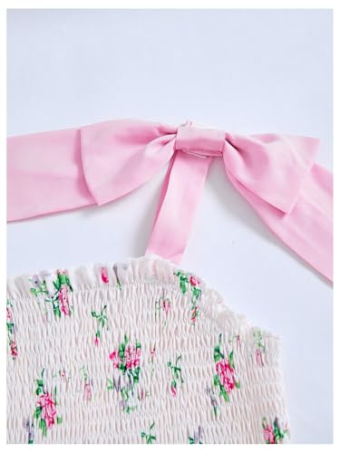 Verdusa Girl's Ditsy Floral Print Layered Ruffle Dress Sleeveless Tie Shoulder Elegant Midi Dresses 5