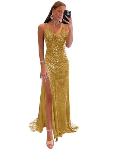 More information about BOLENSYE Sequin Prom Dresses Mermaid Formal Gown Spaghetti Strap V Neck Sparkly Evening Party Dress with Slit
