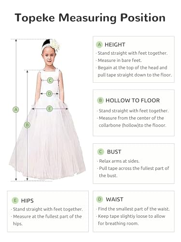 • Size: Please refer to our Flower Girl Dress Size Chart before purchasing. We can customize dress, please choose One Size and send us the measurements of your girls full chest, waist, hip, and hollow to floor