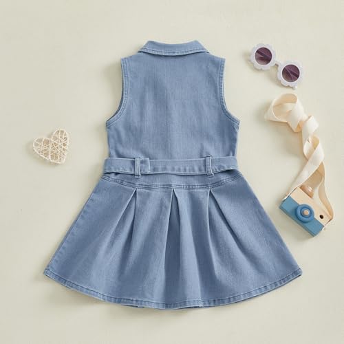Toddler Girls Denim Dress Sleeveless Collared Neck Jean Shirt Dress Little Girl Dresses with Belt 6