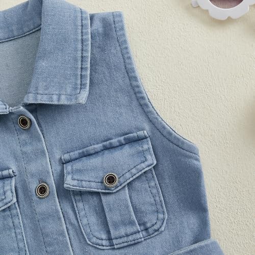 Toddler Girls Denim Dress Sleeveless Collared Neck Jean Shirt Dress Little Girl Dresses with Belt 5