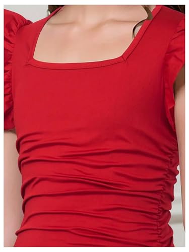 HOT ! Floerns Girl's Ruffle Cap Sleeve Ruched Square Neck Tight Cocktail Party Bodycon Dresses