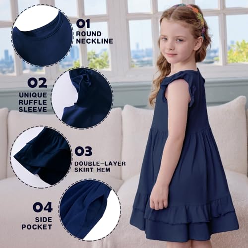 Little Bitty Toddler Girl's Dresses Summer Cotton Dress Flutter Sleeve Tiered Casual Skater Frock Twirly Sundress 3-8 Years 4