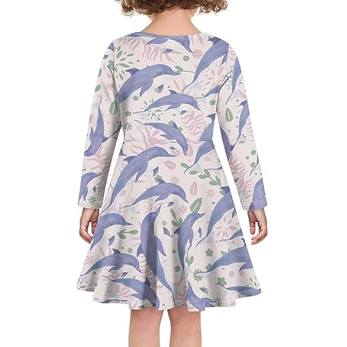 Comfortable Midi A Line Long Sleeve Round Neck Flared Skate Dress for Girls School Birthday Travel Girls Dress 5
