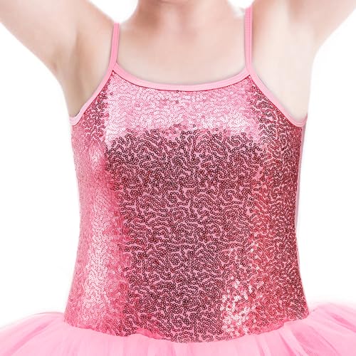 Sequin Ballet Tutu Dress for Girls, Sparkly Straps Ballet Leotards, Ballerina Skirt with Straps and Shinny Sequins 6