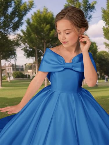 Satin Flower Girl Dress with Bow Off Shoulder First Communion Dress for Girls Pageant Dresses 6