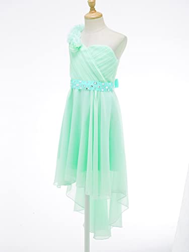 Kids One Shoulder Asymmetrical Chiffon Junior Bridesmaid Wedding Flower Girl Dress Party Princess Dress 6