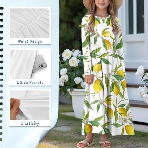 Girls Casual Maxi Dress Long Sleeve Loose Holiday Dresses with Pockets Back to School Outfits for Girls Plus Size 5