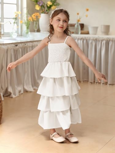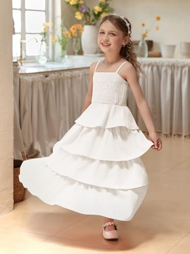 More information about MCieloLuna Girls Dresses 2025 Summer Flower Girl Wedding Guest Dress Tiered Square Neck Holiday Dance Party Gown