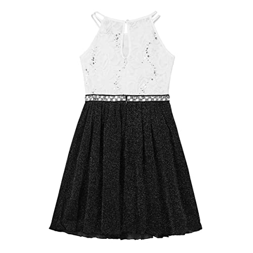 YiZYiF Big Girls' Halter Sequins Lace Chiffon Flower Dress Junior Wedding Bridesmaid Prom Party Gowns 6