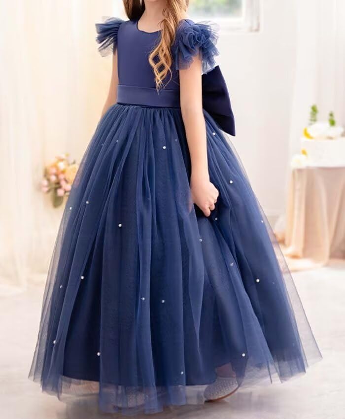 • Attention to Detail: Flower girl dresses for wedding features tulle fly sleeves, V-neck design in the back, dress embellished with pearls and a satin bow at the back waist. Each flower girl dress in our collection is carefully crafted with attention to detail. You can trust that this dress will remain beautiful even after multiple wearings.