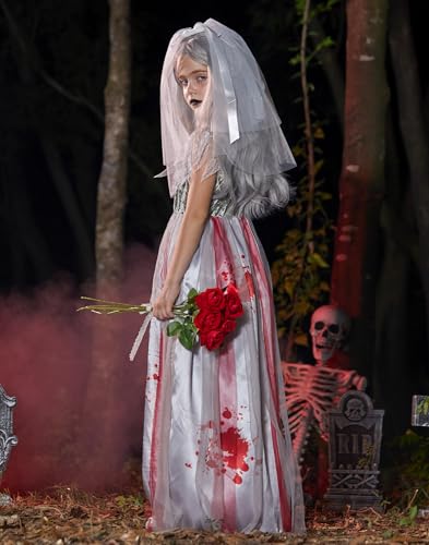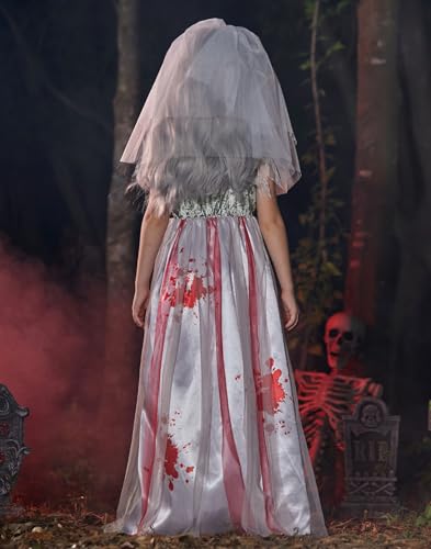 Halloween Girls Zombie Bride Dress with Veil Headband 4-14 Years 6
