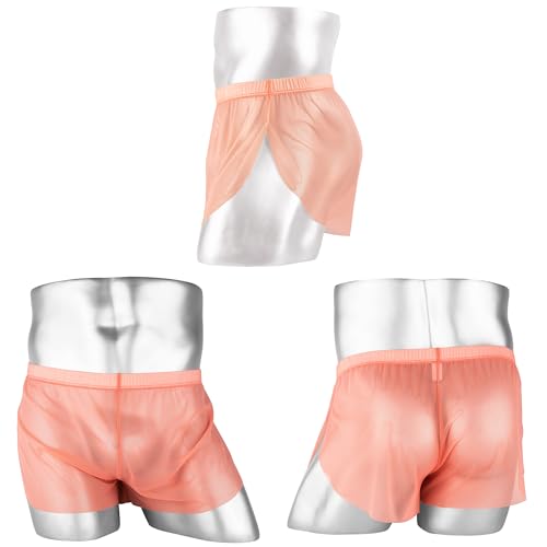 Men’s Sheer Boxer Briefs See Though Micro Mesh Ice Silk Sexy Split Side Bulge Pouch Breathable 3
