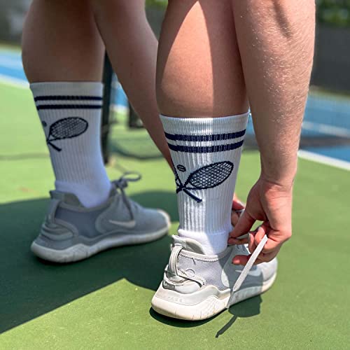 ChalkTalkSPORTS Tennis Performance Crew Socks - Crossed Racquets - Youth & Adult - Multiple Colors - Tennis Mid-Calf Socks 6