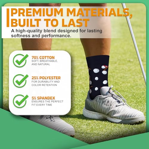 • 🧦 DURABLE & QUALITY – These men’s graphic socks are made with 70% Cotton, 25% Polyester and 5% spandex for a better fit. They’ve also been carefully stitched together to make them extremely durable and long lasting.