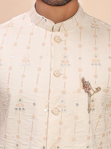 Mens Heavy Cotton Silk Sequence Kurta Trouser Set With Waistcoat (Nehru Jacket) (C-124) 7