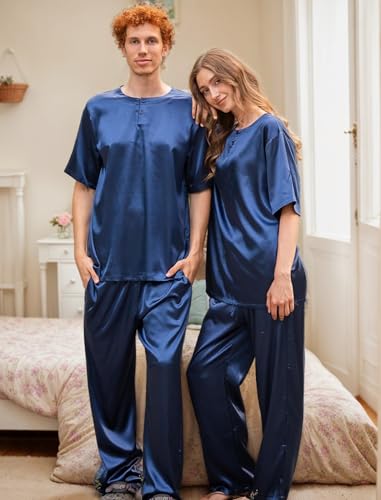 More information about Ekouaer Mens Silk Satin Pajama Set Short Sleeve Sleepwear Silky Loungewear with Long Pants