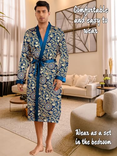 More information about Men's Satin Kimono Robe Set with Shorts, 2 Piece Lightweight Bathrobe with Belt, Long Sleeve Silk Sleepwear