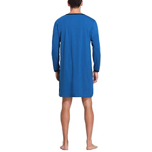 HOT ! Men's V-Neck Nightshirt Nightwear with Pocket, Long Sleeve Light Weight Cotton Poly Loose Sleep Shirt (Color : Blue, Size : X-Large)