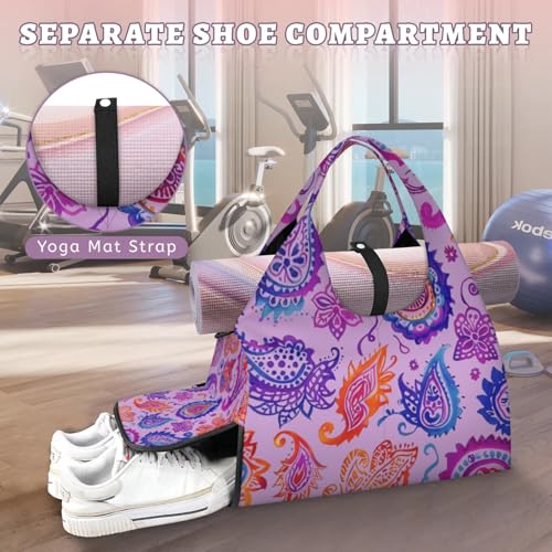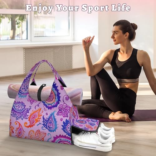 HOT ! Yoga Gym Bag for Women, Retro Pattern Gym Bag with Yoga Mat Holder, Duffel Bag, Sport Bag with Shoe Compartment and Wet Dry Storage Pockets, Suitable for Gym, Travel, Pilates and Beach