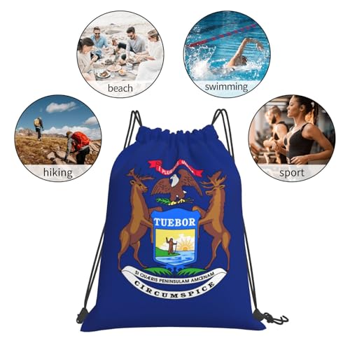 BREAUX Michigan State Flag print Leisure drawstring backpack, fitness bag, foldable fit for sports travel and daily use 5