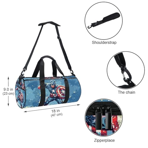 For Captain America Sporty Duffle Bag, Sized 17.7 Inches with Interior Zipper Pocket and Large Capacity - Swim, Basketball, Travel, Carry on Bag 1