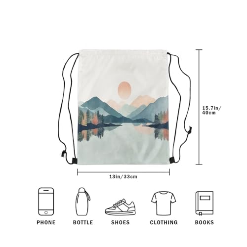 More information about jejeloiu Sun Lake Drawstring Backpack 13"x15.7" Mountain Sports Gym String Bag Blue Pink Drawstring Bags Nature Landscape Waterproof Cinch Bag Sports Drawstring Sackpack