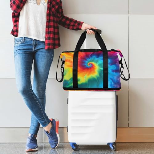 HOT ! Tie Dye Gym Bag - Weekender Overnight Bags for Women Men, Sport Travel Duffel Bag with Wet Pocket & Shoe Compartment