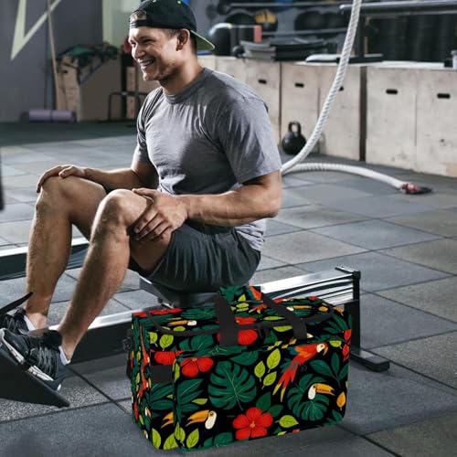 Travel Duffel Bags for Men and Women, Waterproof Weekender Overnight Gym Bags, Tropical Leaves Parrots 3