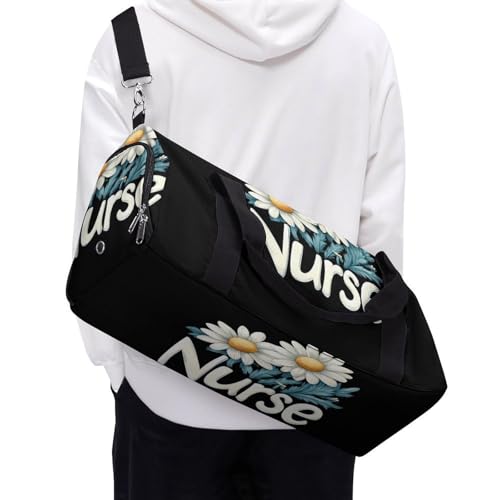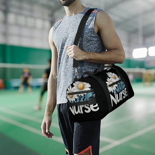 Nurse Daisy Flowers Gym Bag Travel Duffle Bags Carry On Tote Weekender Bag Suitable for Men Women 5