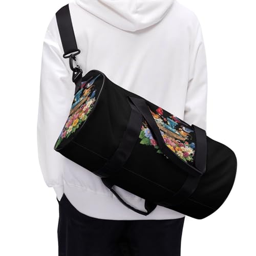 Cardinal & Chickadee Birds Spring Flowers Sports Gym Bag Travel Duffel Workout Bag with Adjustable Strap 6