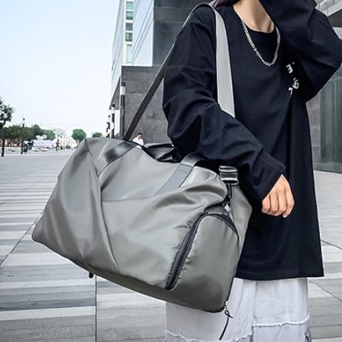 HOT ! Gym Bag Waterproof Nylon Sports Duffel Bags with Wet Pocket Shoes Compartment Adjustable Strap for Travel, Weekend, Camping, Grey