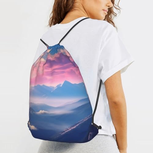 Drawstring Bag for Women Lightweight Sports Gym Bag Blue Mountains and Clouds Soccer Backpack for Travel 5