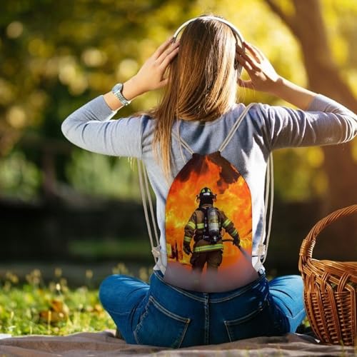 Firefighter Fireman Flame Drawstring Backpack Gym Bag Lightweight Sackpack Gift for Hiking Travel Beach Shopping 5