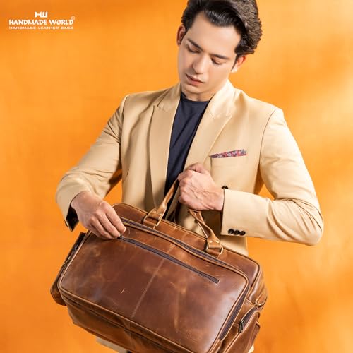 More information about Handmade World Large Leather Briefcase Duffel Bag For Men 'BossWell Office' Fits 18 Inch Laptop Messenger For Business Travel