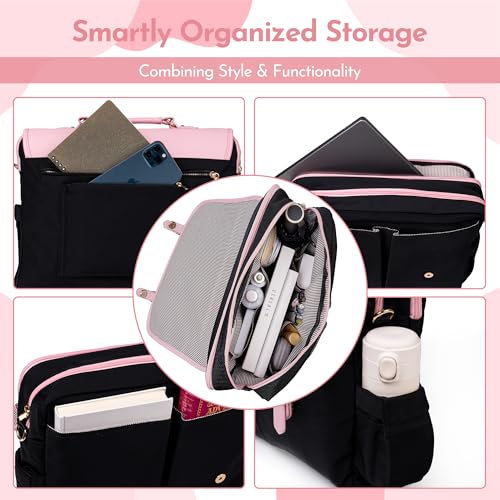 • 📐 17 SMART POCKETS FOR ORGANIZED WORKDAYS Features include padded 15.6” laptop sleeve, tablet holder, pen and phone slots, document compartments, and side water bottle pockets — perfect for fast-paced professional life.